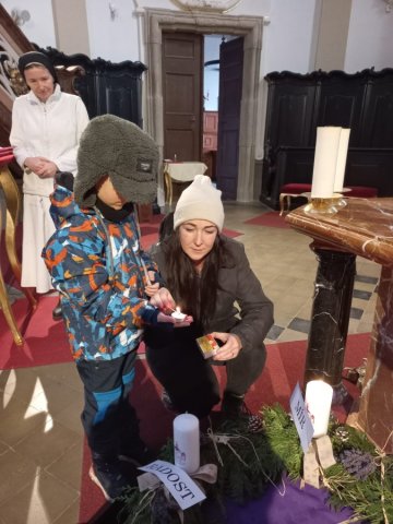 Moc děkujeme sestře Robertě, která dětem připravila úkol v bazilice - hledali jsme svíce na adventní věnec a společně si je pojmenovali. Děkujeme i otci Pavlovi, že jsme se mohli zase po roce sejít v naší krásné bazilice spolu s MŠ Liberecká, MŠ z Lückendorfu a zazpívat si vánoční koledy a naladit se na příjemnou vánoční atmosféru.