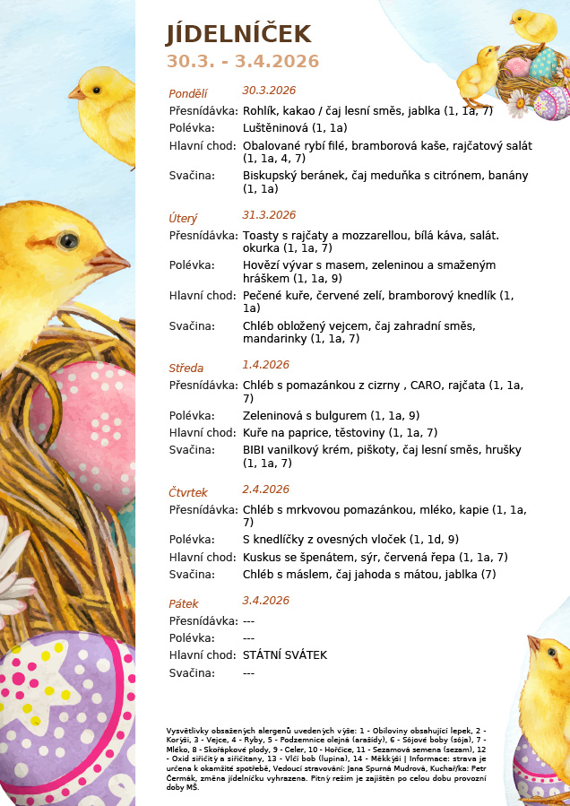 Aktuální jídelní lístek 30. 3. - 3. 4. 2026