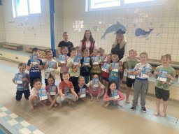 Dne 16. května naši předškoláci úspěšně absolvovali poslední lekci plaveckého kurzu, který probíhal od 28. března do 16. května. Každý pátek se děti s nadšením účastnily lekcí v čase od 9:00 do 10:00 hodin, kde si osvojovaly základy plaveckých dovedností, hry ve vodě a především odvahu a jistotu v neznámém prostředí.
