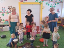 Včera a dnes se v naší mateřské škole konala muzikoterapie, při které se děti seznámily s netradičními hudebními nástroji, jako jsou hangpan, dešťová hůl, ocean drum a další. Všechny nástroje si měly možnost samy vyzkoušet a celý program byl doplněn vyprávěním poutavého příběhu o skřítkovi. Děti vám ho jistě velmi rády samy převypráví. Za krásný a podnětný program moc děkujeme!