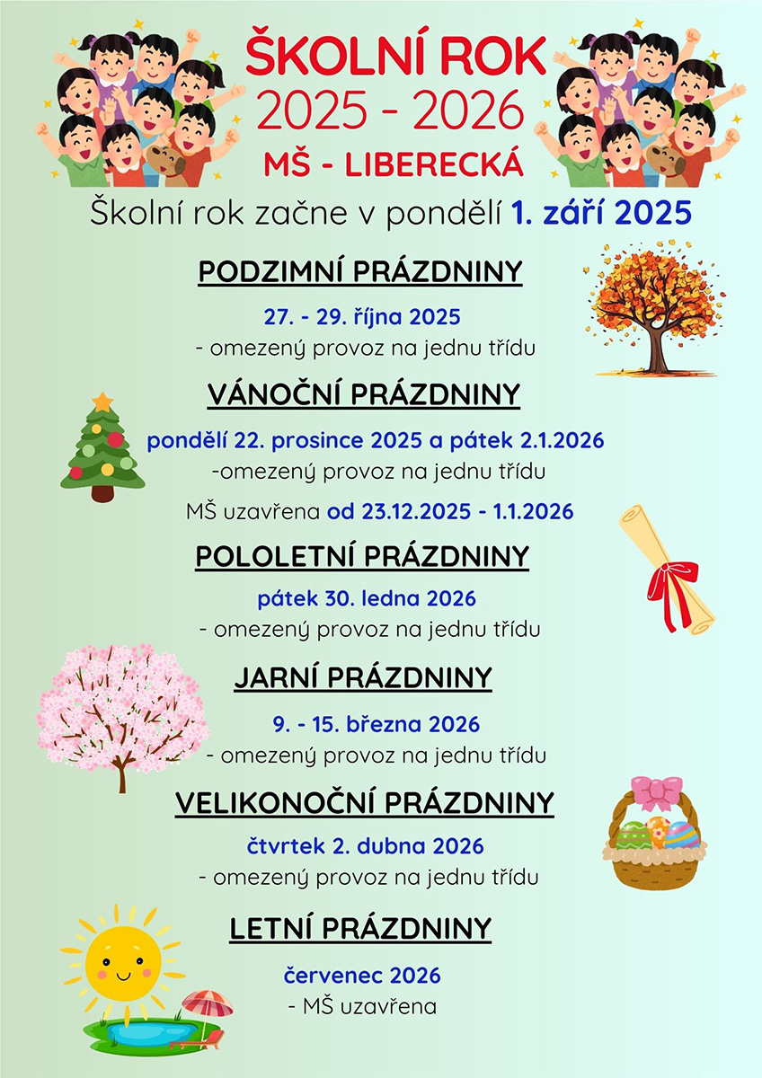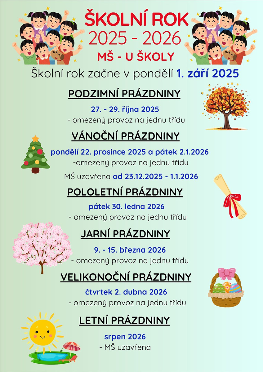 MŠ uzavřena od 23.12.2025 - 1.1.2026
